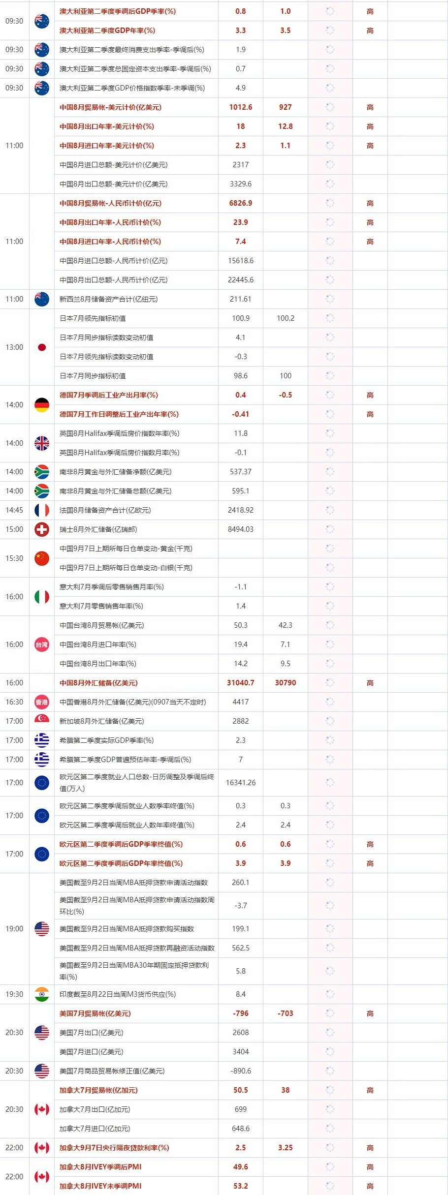 后续及时更新的财历数据请关注:【汇通网9月7日财经日历】