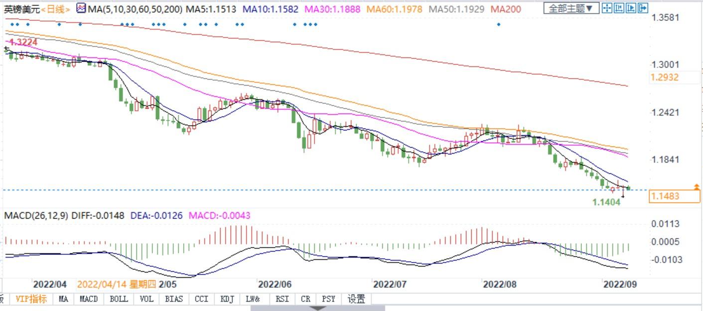 北京时间9月8日17:29,英镑兑美元报1.1479/81。
