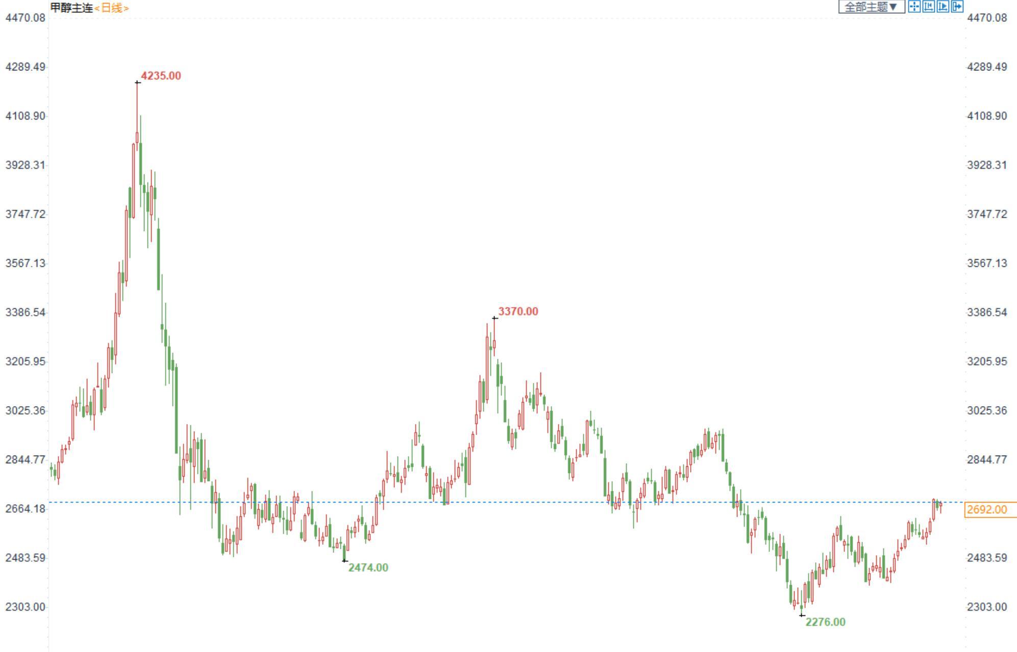 期货市场,甲醇2301合约小幅收涨,收盘价2692。江苏现货报价2640-2645,市场成交一般。