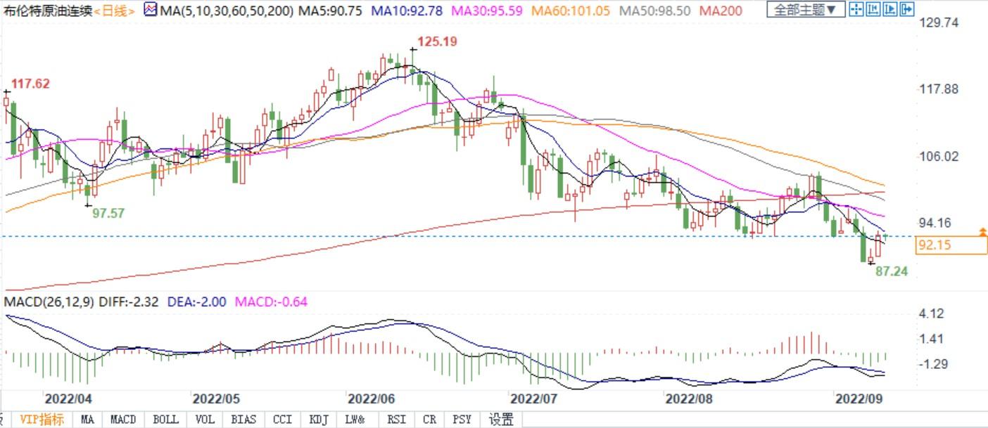 (布伦特原油主力合约日线图)