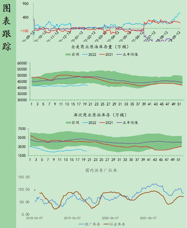 供应端:美国能源信息署数据显示,截止2022年9月2日当周,包括战略储备在内的美国原油库存总量8.69662亿桶,比前一周增长132万桶;美国商业原油库存量4.27191桶,比前一周增长884万桶;美国汽油库存总量2.1480亿桶,比前一周上升333万桶;馏分油库存量为1.11801亿桶,比前一周增长95万桶。原油库存比去年同期高0.78%;比过去五年同期低3.38%;汽油库存比去年同期低2.36%;比过去五年同期低约6.85%;馏份油库存比去年同期低16.31%,比过去五年同期低23.28%。