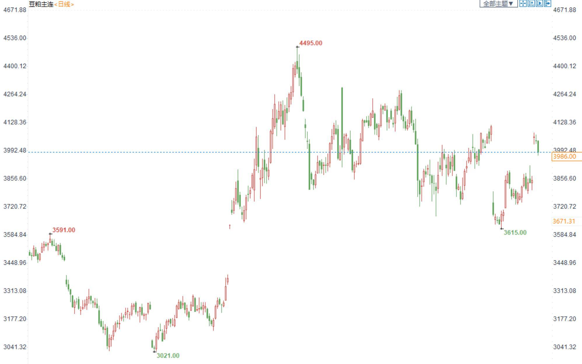豆粕2301合约日内跌1.41%,收盘价3985元/吨,现货张家港43%蛋白豆粕4820元/吨。