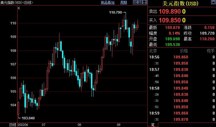 截至发稿,现货黄金累计下跌近2.93%至1665.84美元附近/盎司;美元指数累计上涨0.82%至108.879。