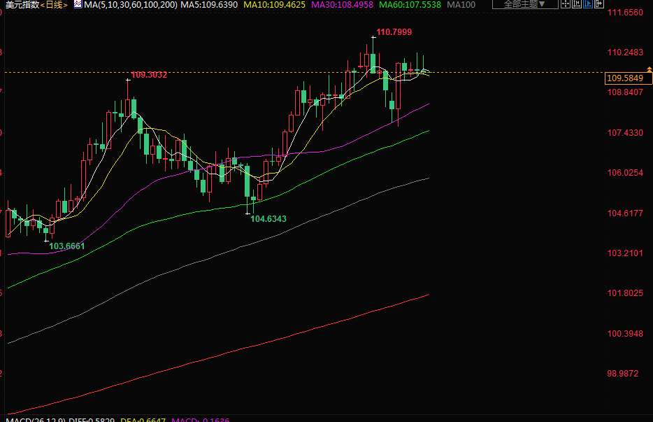 北京时间周二(9月20日)亚市早盘,美元指数交投于109.6附近;美元周一在110附近高位拉锯,交投陷于窄幅区间,本周多家央行将发布利率决议,预计美联储可能在会上宣布再次加息75个基点;金价在29个月低点附近徘徊;油价微涨,因为对供应紧张的担忧超过了对全球需求或因美元走强和利率可能大幅上升而放缓的担忧。