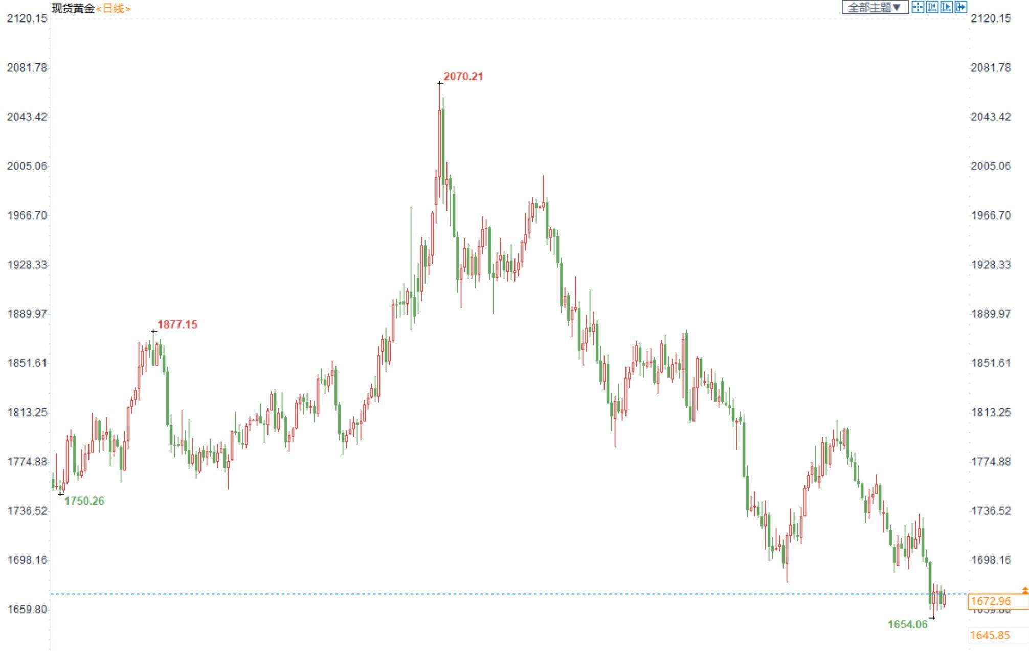 【今日行情】金银均收涨。AU2212收盘价为386.98,收涨0.39%;AG2212收盘价为4443,收涨0.41%。美元指数高位走强,再创新高至110.87;十年期美债收益率突破3.5%,实际利率端仍强于通胀预期端,继续走强至1.17%,创2018年底以来新高,对金银的压制仍较强。