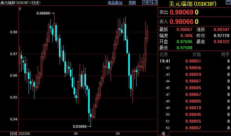 美元兑瑞郎本周大涨1.69%至0.9804。瑞士央行如期加息75个基点,政策利率从-0.25%升至0.50%,结束持续8年的负利率政策,但瑞士央行下调经济增速预测。