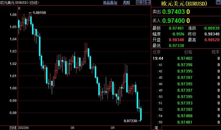 欧元兑美元大跌2.61%至0.9751,本周创2002年10月28日以来新低至0.9736。欧洲央行效仿美联储,在本月加息75个基点后,虽然他们同意需要采取进一步行动来控制创纪录的通胀,但随着能源成本飙升使欧洲走向衰退,对于前置加息是否合适存在一些分歧。