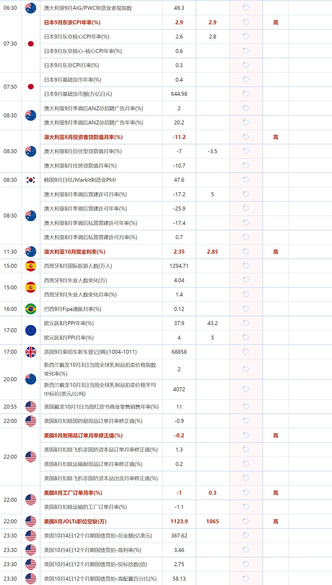 10月4日财经数据和大事件前瞻