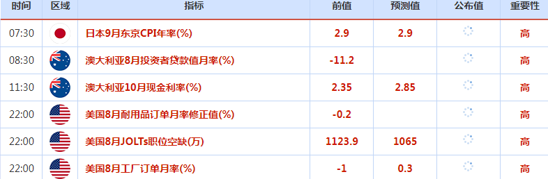 11:30 澳洲联储公布利率决议;23:00欧洲央行行长拉加德发表讲话;美联储多位官员讲话。