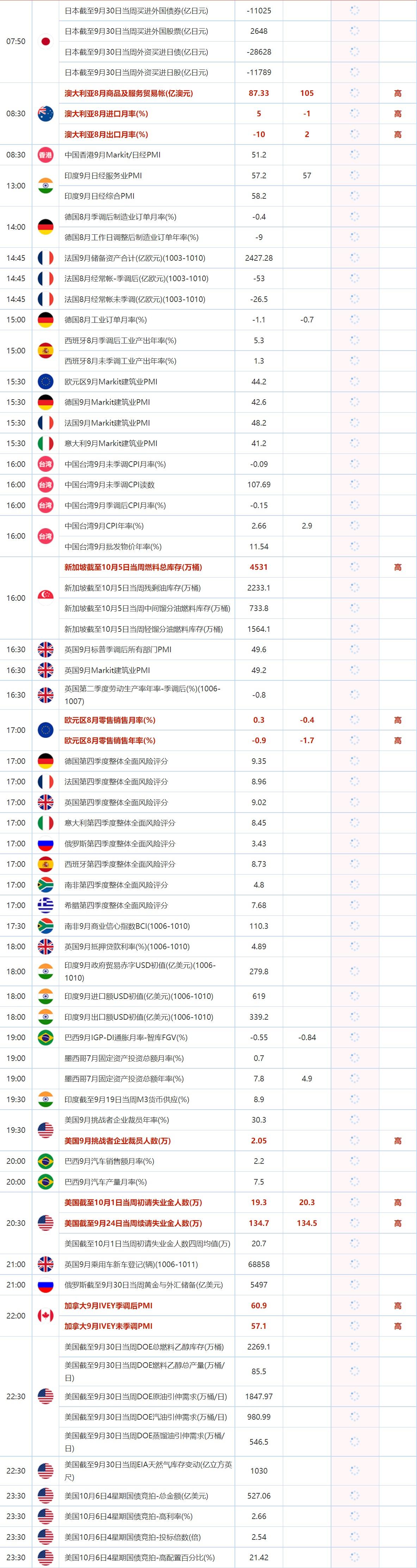 后续及时更新的财历数据请关注:【汇通网10月6日财经日历】