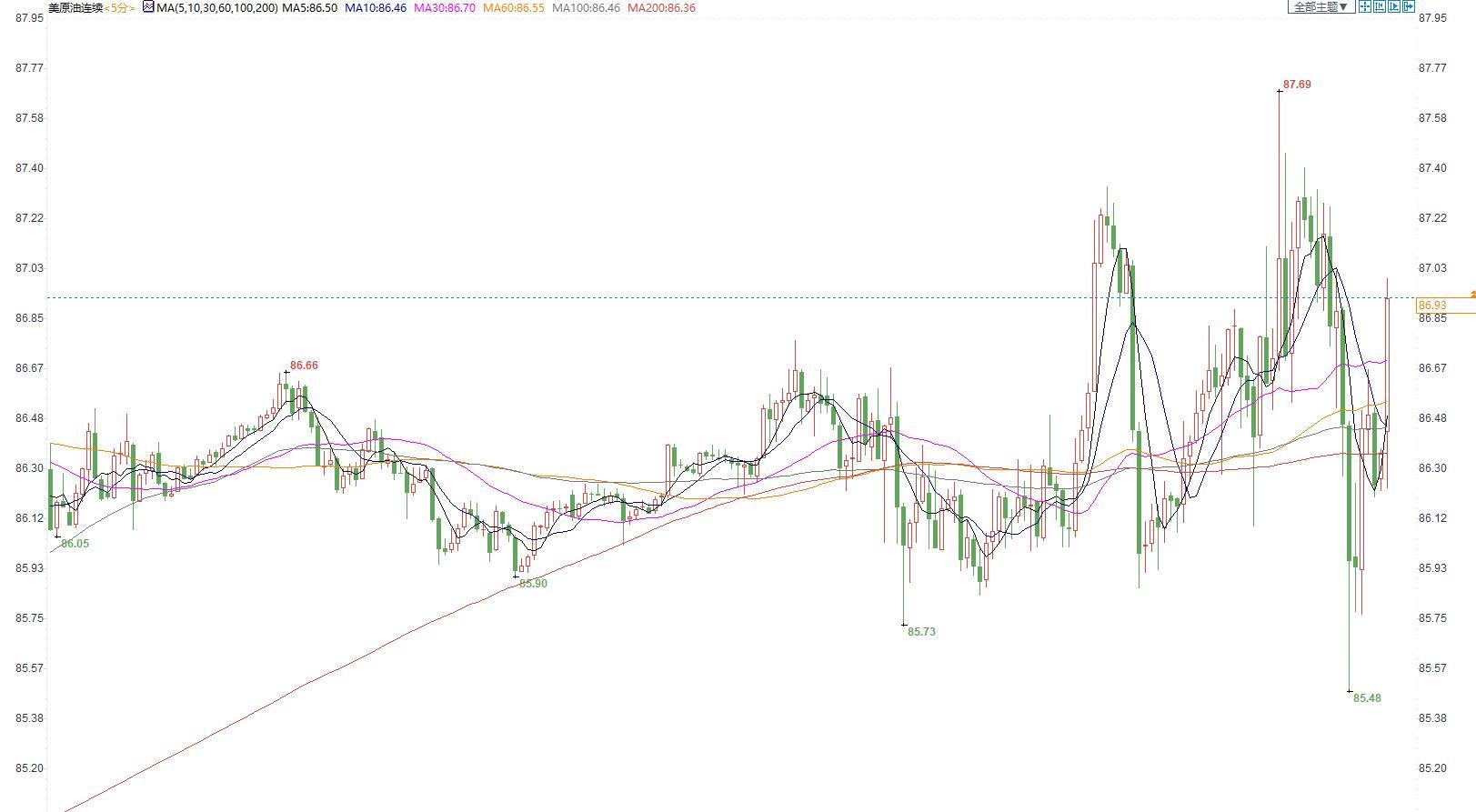 美国原油价格5分钟图显示