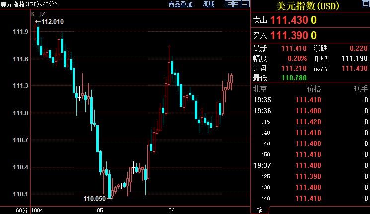 北京时间19:37,现货黄金下跌0.09%至1714.45美元/盎司;COMEX期金主力合约上浮0.13%至1723.0美元/盎司;美元指数上涨0.19%至111.403。