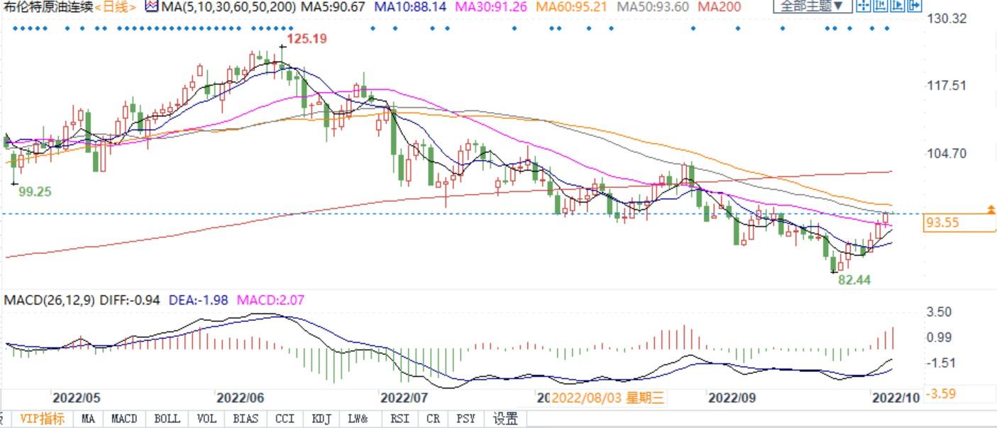 北京时间10月6日11:31,布伦特原油主力合约价格报93.55美元/桶。