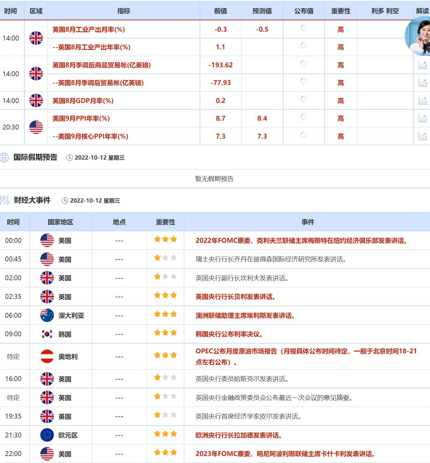 ③周三(10月12日)关键词:美国9月PPI,英国央行行长贝利