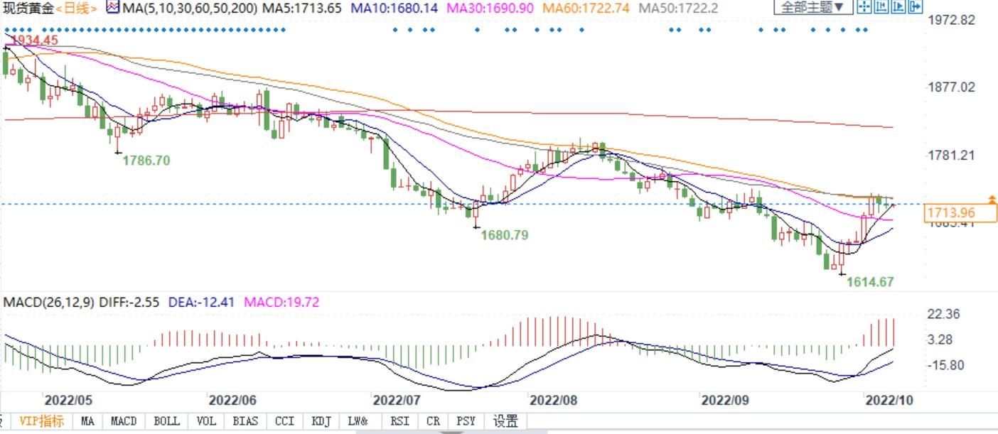 北京时间10月7日17:11,现货黄金报1713.76美元/盎司。