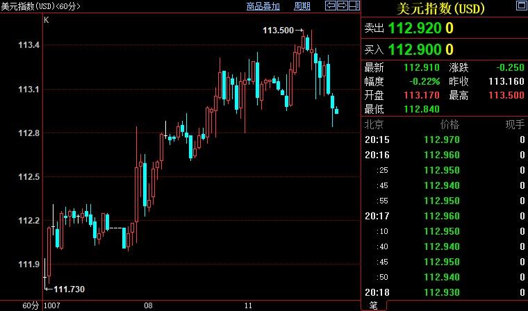 北京时间20:17,现货黄金上浮0.13%至1670.78美元/盎司;COMEX期金主力合约上涨0.17%至1678.3美元/盎司;美元指数下跌0.22%至112.932。