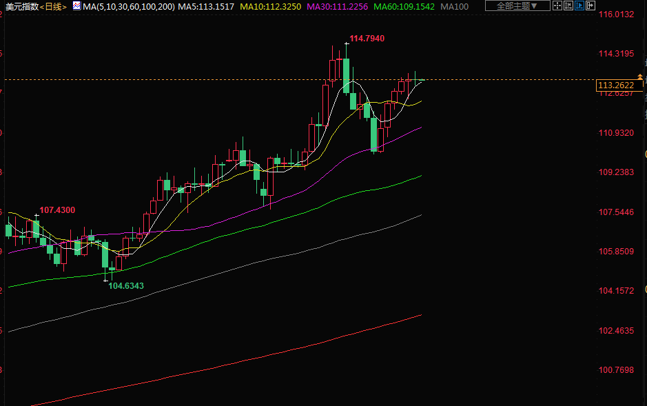 北京时间周四(10月13日)亚市早盘,美元指数交投于113.25附近;美元兑日元周三攀升至24年新高,维持在上个月促使日本官员进行干预的水平之上,而英镑在上一交易日大幅下跌后反弹,因为投资者在思考英国央行的下一步行动;在美联储上一次会议记录显示出一些鸽派色彩后,美元缩小了涨幅;金价持坚,在美联储上次政策会议记录公布后,美元和美国国债收益率下降,为金价提供了支持;油价连续第三天下跌,原因是对需求的持续担忧、美元走强以及对主要央行进一步加息的预期。