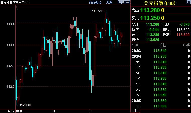 北京时间20:04,现货黄金上浮0.10%至1667.82美元/盎司;美元指数下跌0.03%至113.243。