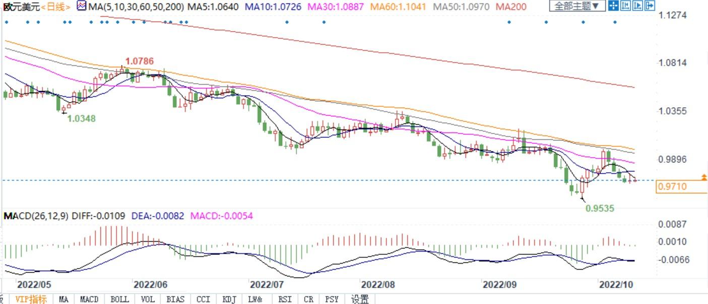 北京时间10月12日20:02,欧元兑美元报0.9707/08。