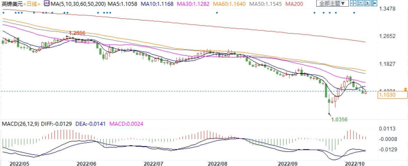 北京时间10月12日16:27,英镑兑美元报1.1031/33。