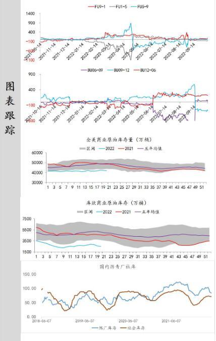 供应端:据美国能源信息署最新数据显示,截止2022年9月30日当周,包括战略储备在内的美国原油库存总量8.45592亿桶,比前一周下降755万桶;美国商业原油库存量4.29203亿桶,比前一周下降135.6万桶;战略原油库存量4.16389亿桶,比上一周下降619.4万桶;美国汽油库存总量2.0746亿桶,比前一周下降472.8万桶;馏分油库存量为1.10916亿桶,比前一周下降344.3万桶。商业原油库存比去年同期高1.98%,比过去五年同期低2.57%;汽油库存比去年同期低7.82%,比过去五年同期低约8.54%;馏份油库存比去年同期低14.24%,比过去五年同期低21.37%。