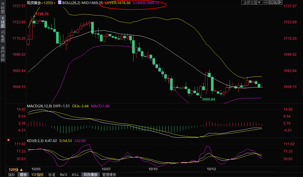 鉴于MACD金叉信号仍在,而且金价周二在1660关口附近录得了十字星K线,若能回升至布林线中轨1680关口上方,则增加短线看涨信号,进一步阻力在10日均线阻力1688.95附近,9月1日低点和9月21日高点阻力都在该位置附近,如能收复该位置,料将进一步提振多头士气。然后是1700关口附近阻力,55日均线阻力目前在1718.83附近。