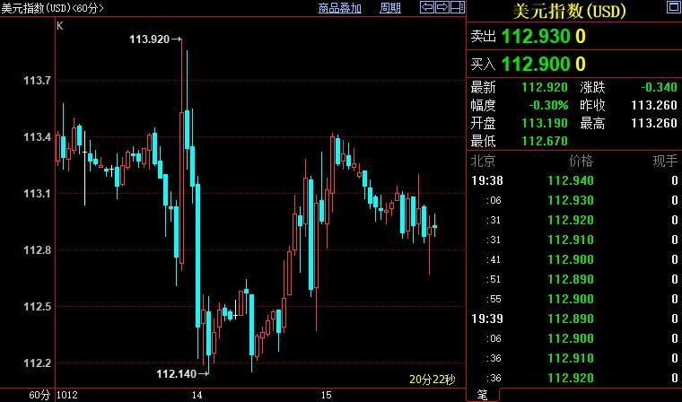 北京时间19:39,现货黄金上涨0.90%至1658.07美元/盎司;COMEX期金主力合约上涨0.91%至1663.9美元/盎司;美元指数下跌0.33%至112.913。