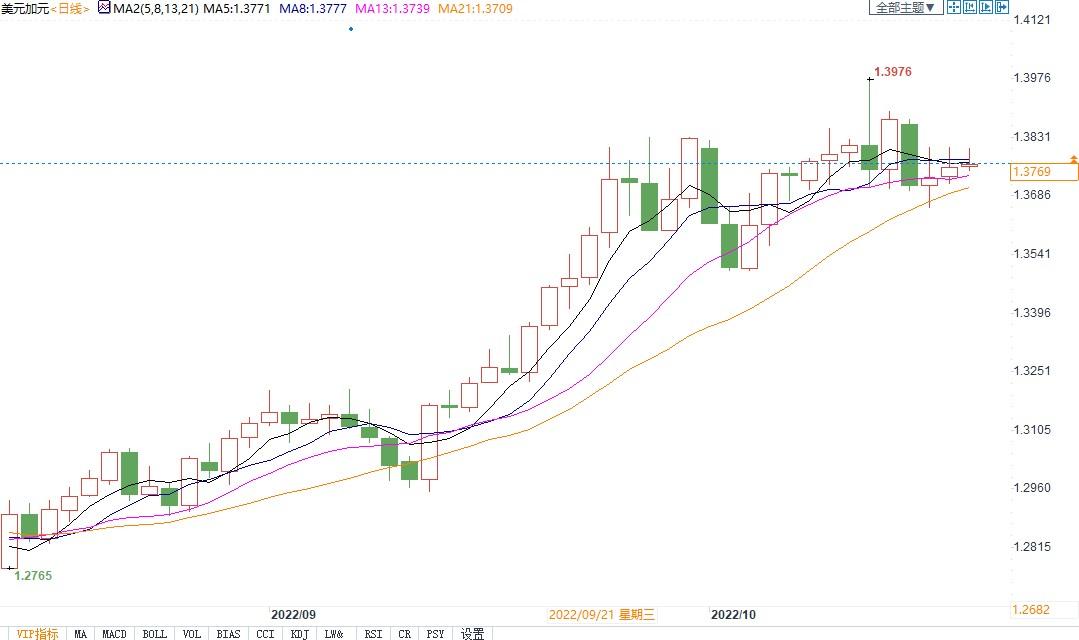 北京时间10月20日14:39,美元兑加元报1.3768/70
