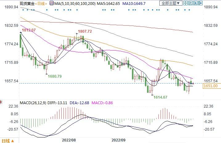 北京时间10月25日14:49, 现货黄金报1650.70美元/盎司