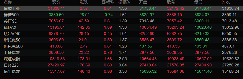 美股收盘情况:道琼斯工业指数微涨0.01%,至31839.11点;标普500指数下跌0.74%,至3830.6点;纳斯达克指数下跌或2.04%,至10970.99。