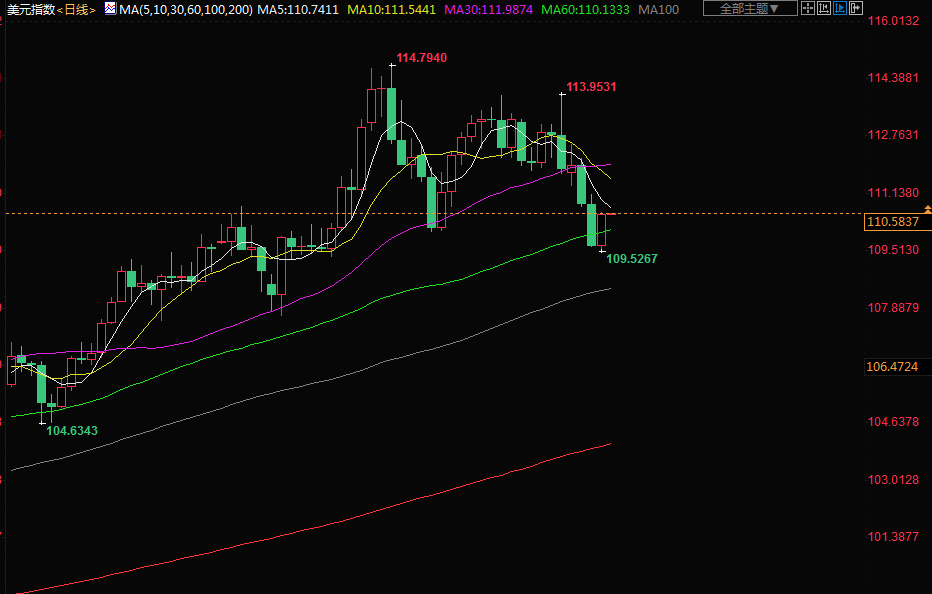 北京时间周五(10月28日)亚市早盘,美元指数交投于110.56附近;美元周四走强,美国第三季国内生产总值(GDP)结束了连续两个季度产出下降的趋势,这曾引发人们对经济陷入衰退的担忧;欧元下跌超过1%,兑美元回到平价之下,欧洲央行将存款利率提高75个基点,至1.5%的2009年以来最高水平,以防止价格快速增长变得根深蒂固;金价下跌,美元上涨盖过了美联储在下周政策会议后将放缓加息的预期带来的支持;油价延续了前一天近3%的涨势,因为对美国原油出口创纪录的乐观情绪和经济衰退担忧减弱的迹象盖过了对需求疲软的担忧。