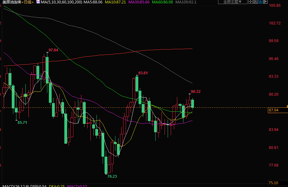 商品收盘情况:布伦特原油期货下跌1.5%,结算价报每桶94.67美元,美国原油期货下跌2.0%,结算价报每桶88.17美元。美国期金结算价报每盎司1630.9美元,下跌1.2%。