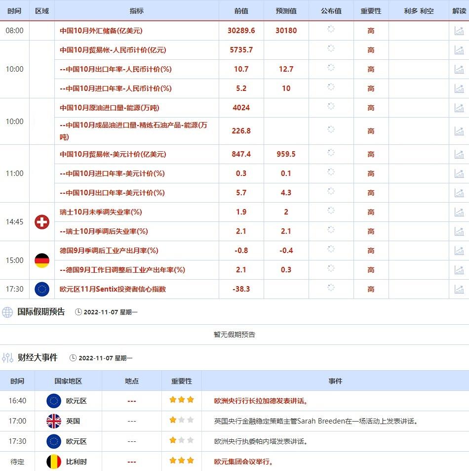 ①11月7日(周一)关键字:欧元区11月Sentix投资者信心指数,欧洲央行行长拉加德
