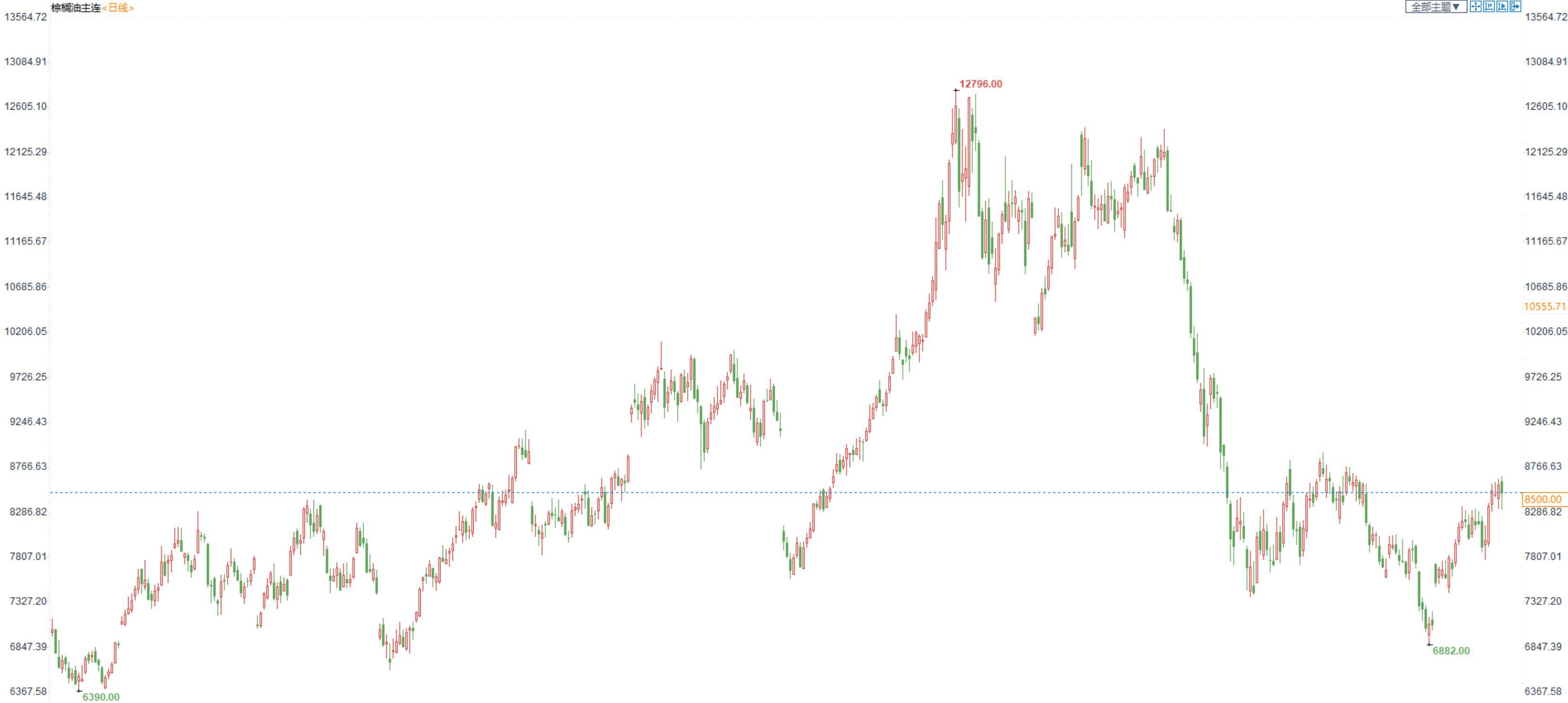 棕榈油2301合约日内涨0.12%,收盘8500元/吨;广州市场棕榈油8650元/吨。