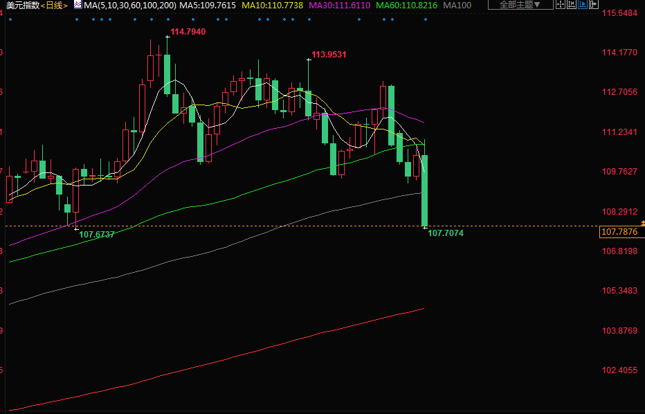 北京时间周五(11月11日)亚市早盘,美元指数交投于107.77附近;美元周四下跌,此前美国10月消费者价格涨幅低于预期,并暗示核心通胀已经见顶,数据令市场欢欣鼓舞,因为这可能会促使美联储放缓加息步伐;金价反弹近3%,达到两个多月以来最高;油价收高约1%,本周以来首次上涨,低于预期的美国通胀数据盖过了对燃料需求的担忧。