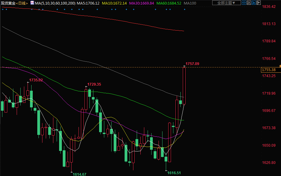 商品收盘情况:布伦特原油期货上涨1.1%,结算价报每桶93.67美元。美国原油期货上涨0.8%,结算价报每桶84.67美元;美国期金结算价报1753.7美元,上涨2.3%。