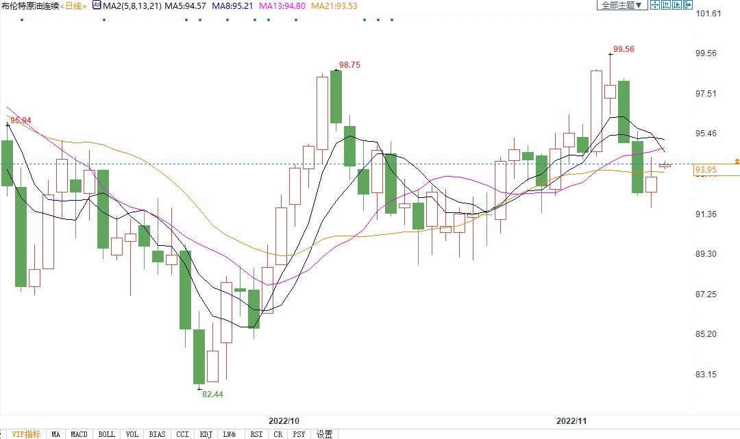 北京时间11月11日13:58,布伦特原油主力合约价格报93.96美元/桶。