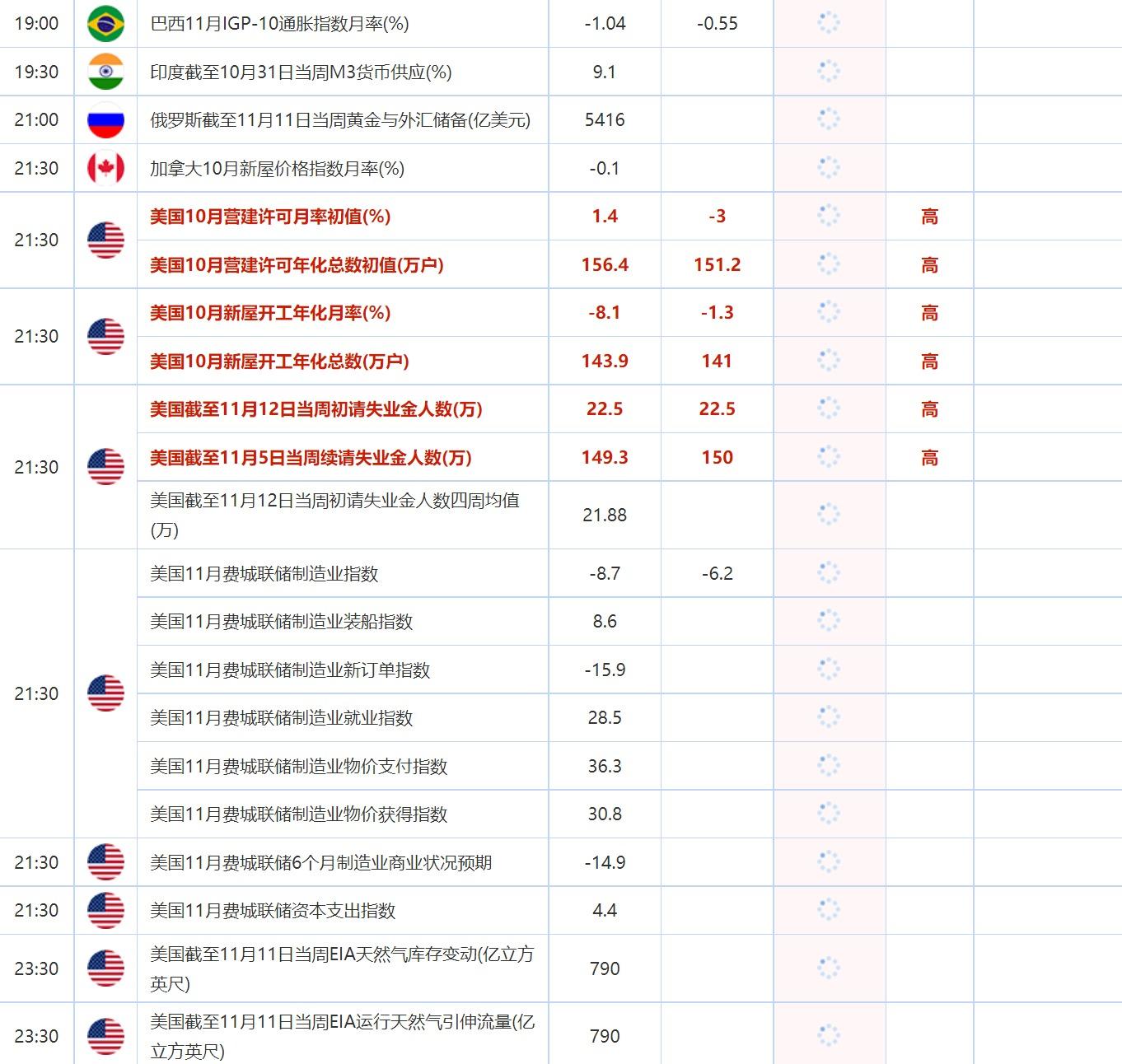 后续及时更新的财历数据请关注:【汇通网11月17日财经日历】