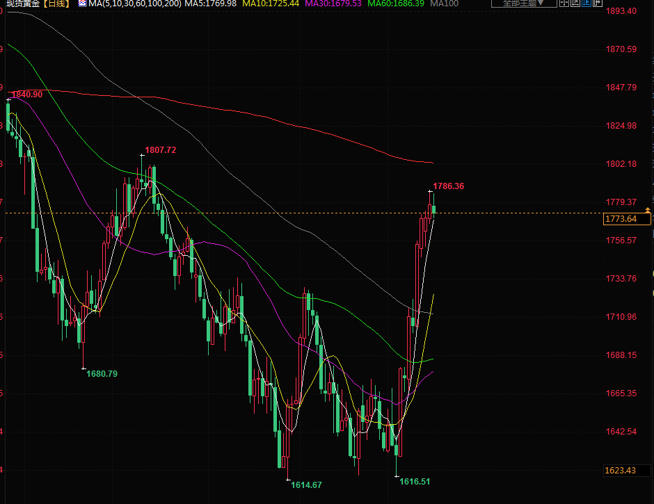 黄金周三徘徊在三个月高点附近,受美元小幅走强而指标美债收益率下滑影响,市场焦点从全球紧张局势转向美联储的利率策略。现货金下跌0.3%,至每盎司1773.13美元。