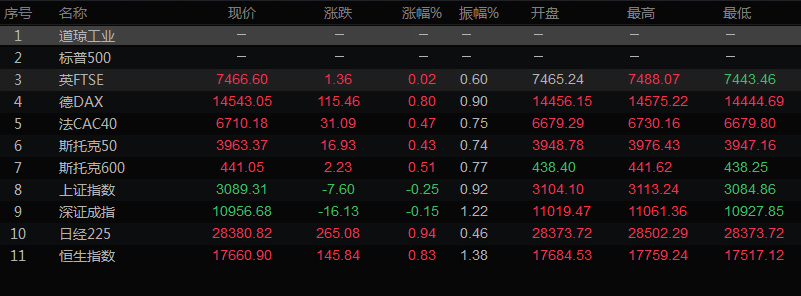 欧洲收盘情况:德股DAX指数收高0.78%,法股CAC-40指数收高0.42%,英股富时100指数上扬0.02%。