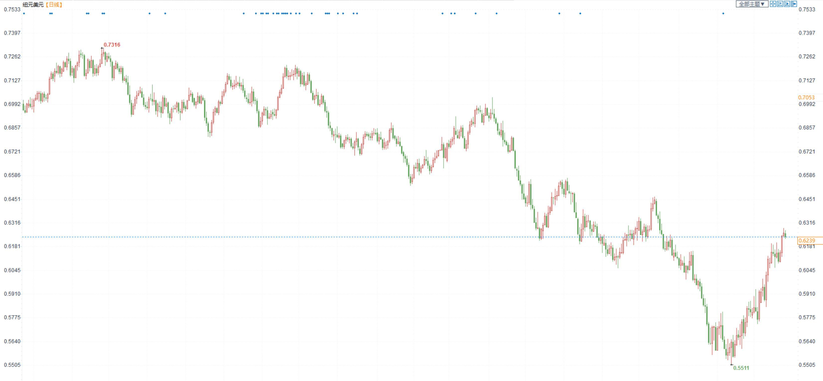 纽元兑美元本周震荡攀升,本周新西兰联储决议鹰派基调继续支持纽元